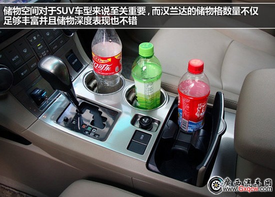 儲物空間對于SUV車型來說至關(guān)重要,而漢蘭達的儲物格數(shù)量不僅足夠豐富并且儲物深度表現(xiàn)也不錯,擋板周圍可放置4個水杯,其中兩個是標準的獨立杯架,另兩個是通過一個大儲物格分隔而成,非常的便利以及人性化。