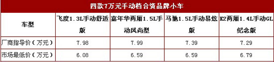 在7萬元以內(nèi)的兩廂小車,作為日常代步的交通工具。要求是合資品牌車型,造型年輕時尚,空間夠大實(shí)用,省油好開的手動檔,功能配置滿足基本需求即可。那么我們可以大概的篩選。