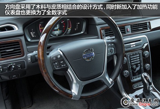 車內(nèi)深色的內(nèi)飾搭配木料裝飾檔次盡顯,在保留了沃爾沃經(jīng)典設(shè)計(jì)的同時(shí),2014款的S80還加入了諸多新“玩意兒”。方向盤采用了木料與皮質(zhì)相結(jié)合的設(shè)計(jì)方式,同時(shí)新加入了加熱功能,這讓車主在冬天能夠得到更舒適的駕駛感受,后方的儀表盤也更換為了全數(shù)字式,雖然更加現(xiàn)代,但是與整車氣質(zhì)的搭配還有待商榷。