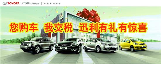 即日起,到廣汽豐田南寧迅利江南店全額訂購致炫的前五十名車主,迅利店贈送3000元購置稅,"您買炫車我交稅",還在等什么?快來預(yù)定您的"致炫"吧。