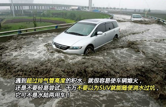如果在水中發(fā)現(xiàn)積水越來越深,果斷放棄前進(jìn),調(diào)轉(zhuǎn)方向選擇繞路吧。對(duì)于不熟悉的道路,看到有積水還是不要貿(mào)然嘗試,寧愿繞路也不要冒險(xiǎn),選擇熟悉或沒有積水的安全道路通過為好。在此要特別提醒一下開SUV的司機(jī)們,千萬不要以為SUV就能隨便淌水過坑,一般的SUV只是底盤比轎車高一些,一些城市SUV的底盤甚至不比轎車高,一旦積水過深,該熄火還是會(huì)熄火,該淹更是會(huì)淹。
