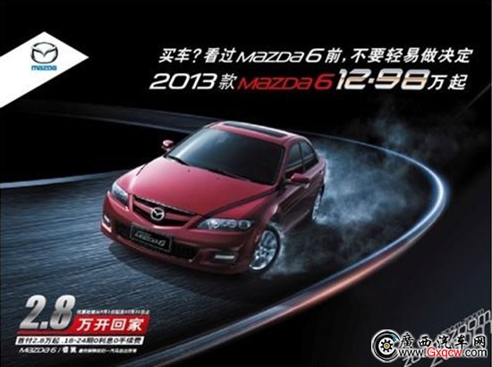 4種金融購車方案,最低首付2.8萬,2013款Mazda6的“殺手锏”