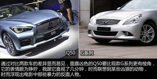 英菲尼迪開始采用最新的命名規(guī)則,這讓包括我在內(nèi)的不少人錯亂了一陣。在本屆法蘭克福車展中,英菲尼迪G系列的接班人Q50在展臺亮相,與目前在售的G系列相比它給人的視覺感受太兇猛了,不信你自己看。