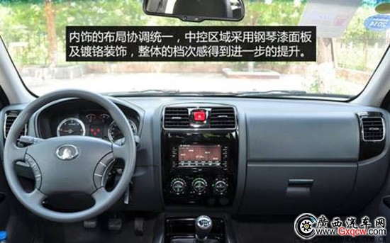 長(zhǎng)城M4的內(nèi)飾以黑色為主打設(shè)計(jì),配以銀色面板裝飾。傳統(tǒng)的時(shí)速表也改為液晶屏幕,并可以顯示油耗,里程等行車(chē)信息。M4采用了多功能方向盤(pán),并標(biāo)配12V車(chē)載電源、USB和AUX外置音源接口、大燈高度可調(diào)等,高配車(chē)型還配備了MP5+GPS+倒車(chē)影像+倒車(chē)?yán)走_(dá)的多媒體組合。在同級(jí)車(chē)中內(nèi)部配置相對(duì)豐富。