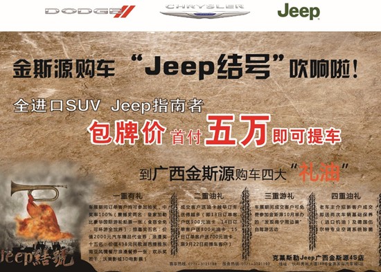 克萊斯勒J(rèn)eep廣西唯一星級(jí)4S店金斯源吹響購車集結(jié)號(hào)!
