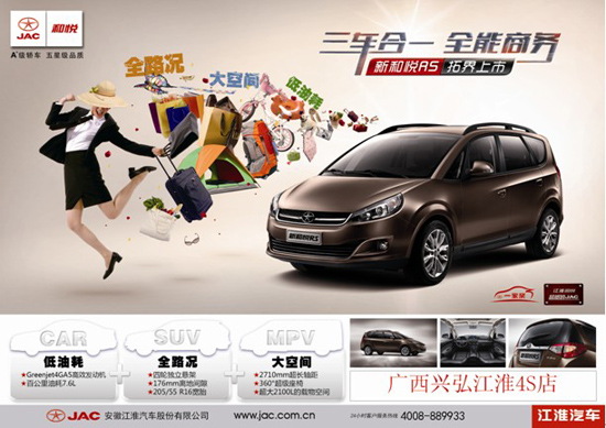2013年9月13-15日北部灣(南寧)第十一屆車展,廣西興弘江淮4S店重磅出擊,攜旗下包括瑞風(fēng)S5、瑞風(fēng)、瑞鷹、賓悅、和悅A30、和悅RS、和悅以及悅悅在內(nèi)的全系車型亮相,其中瑞風(fēng)S5、新和悅RS以及即將上市的和悅A30無疑是最大亮點(diǎn)。且江淮汽車從03年進(jìn)駐廣西南寧已經(jīng)10年,10年是一個(gè)值得慶祝的日子,所以在車展期間推出興弘江淮10周年購車鉅惠。。