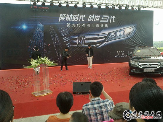 第九代雅閣于北京時(shí)間9月12日正式上市。為了讓廣大車(chē)友第一時(shí)間感受到第九代雅閣的魅力,2013年9月14日,廣汽本田廣西南寧恒安店、廣西華昌店、廣西廣星店共同在廣西南寧第十一屆北部灣車(chē)展現(xiàn)場(chǎng)舉行了第九代雅閣上市發(fā)布會(huì),諸多嘉賓、媒體、車(chē)主應(yīng)邀出席了活動(dòng),共同揭開(kāi)了“第九代雅閣”神秘的面紗!