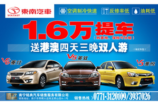 2013年09月16日-2013年10月15日, 東南汽車最低1.6萬提車,保險(xiǎn),購置稅全打包融資,最快1天放款,2~3天可提車,提前圓您購車夢(mèng)!購買指定車型還可獲贈(zèng)港澳四天三晚雙人游哦!親..你還在等什么?