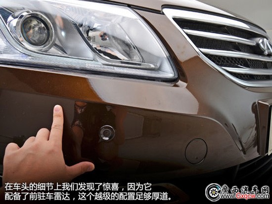 E3的命名已經(jīng)說明它與E5之間的關系,所以E5飽滿的整體造型我們在E3上也能夠看到。飽滿圓潤的車頭依舊采用的是奇瑞慣用的盾形中網(wǎng),貫穿整體前臉的下進氣格柵,在刻意烘托前臉的運動感。大燈近光部分采用了透鏡,讓燈光照明更加聚光。