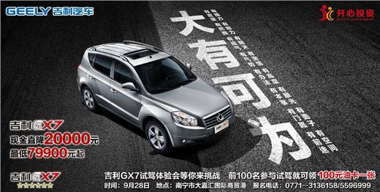 “大有可為 性駕之王”吉利GX7試駕會(huì)招募啦