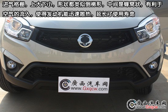 從進(jìn)氣格柵的正前方,我們可以清晰地看到柯蘭多上下兩個(gè)進(jìn)氣格柵,上大下小,形狀都類似倒梯形,中間是蜂窩狀,有利于空氣的流入,使得發(fā)動(dòng)機(jī)能迅速散熱,延長(zhǎng)了使用壽命。