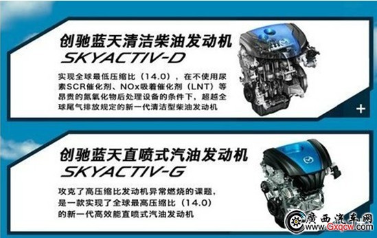 創(chuàng)馳藍(lán)天的汽油發(fā)動(dòng)機(jī)SKYACTIV-G發(fā)動(dòng)機(jī)入選了沃德十佳發(fā)動(dòng)機(jī),馬自達(dá)2.0排量SKYACTIV-G發(fā)動(dòng)機(jī)首次在普通民用車上實(shí)現(xiàn)了高達(dá)14:1的汽油機(jī)壓縮比,引入國內(nèi)后根據(jù)實(shí)際情況壓縮比調(diào)整為13:1。