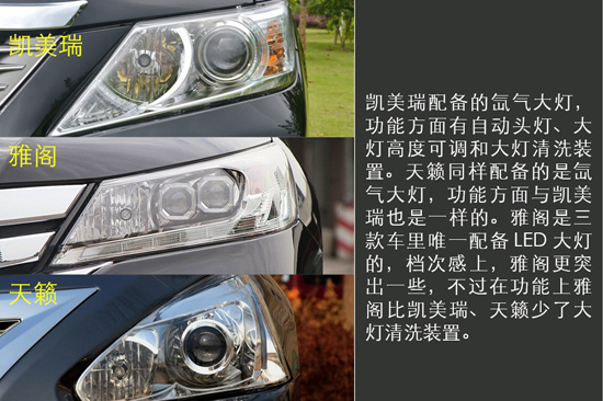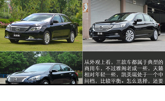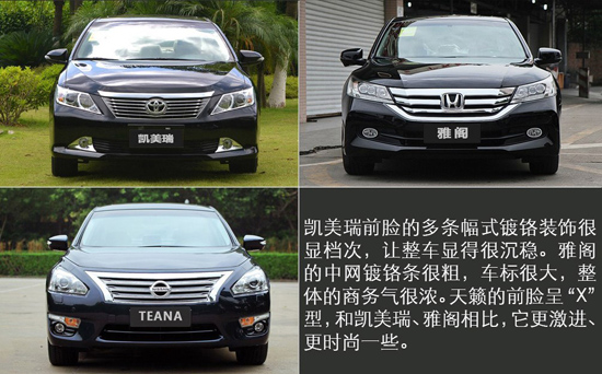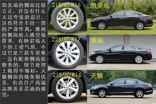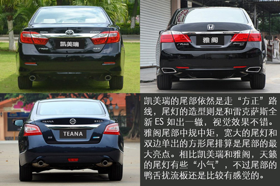 從外觀上來(lái)看,雅閣很沉穩(wěn),天籟比較年輕,凱美瑞處在兩者之間,外部做工上,三款車(chē)都做得比較出色,但雅閣相對(duì)更精細(xì)一些。