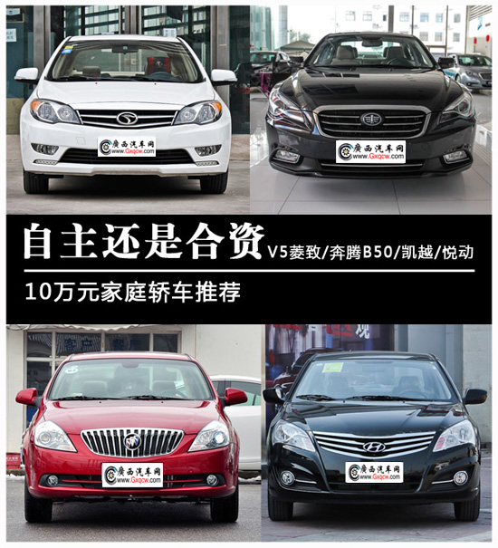 成交價(jià)10萬元相信是很多第一次購車的消費(fèi)者所作出的預(yù)算,而往往實(shí)用的家庭轎車會(huì)比較受歡迎,三廂的A級(jí)車最符合條件同時(shí)也擁有更多的選擇。隨著自主品牌越來越得到認(rèn)可,改變了過往國內(nèi)市場(chǎng)合資品牌獨(dú)大的格局。本文我們選取了V5菱致、奔騰B50、凱越和悅動(dòng)這四款車型進(jìn)行對(duì)比,分析這幾款車型的各自特點(diǎn)。