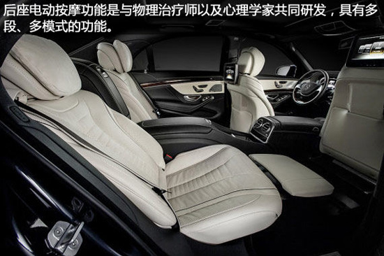 向來以寬闊、優(yōu)雅、褠穩(wěn)、奢華、舒適車艙著稱的S級,在W222上有同樣沒有例外,且由于是以長軸為初始設(shè)計(jì),因此將整個重點(diǎn)放在后座。獨(dú)立四座電動按摩通風(fēng)座椅設(shè)定,僅需利用按鍵即可進(jìn)行椅背調(diào)整,最大角度可達(dá)43.5度,同時也能操控前排乘客的座椅,以提供最佳舒適空間。其電動按摩功能是與物理治療師以及心理學(xué)家共同研發(fā),具有多段、多模式的功能,這對日理萬機(jī)的大老板來說,不失為紓壓的好方法。同時位于前座背面的顯示幕,可進(jìn)行角度調(diào)整,以提供上網(wǎng)、影音等,并前后相對獨(dú)立操作,宛如置身在飛機(jī)頭等艙中。