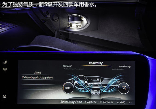 為了滿足買家對專屬的追求,奔馳帶給乘員最清新最獨(dú)特的車室環(huán)境,而發(fā)明了名為AIR-BALANCE的玩意,它搭載全球首創(chuàng)的主動式香氛系統(tǒng)〝active perfuming system〞,根據(jù)奔馳社會趨勢香料工程學(xué)人士表示,這套系統(tǒng)讓車主能自行決定開啟或關(guān)閉,并可自行選擇香味,目前共有Freeside、Sports、Downtown、Nightlife四種氣味,同時針對這套系統(tǒng)和所有香料的開發(fā)長達(dá)六年之久,能滿足大眾需求,并尋找純天然、完全無化學(xué)成分的原料;此外因?yàn)橄懔媳旧聿缓魏尉凭煞,且?jīng)過霧化后以成為極小粒子,所以不會附著在衣料、車內(nèi)布料和任何材質(zhì)上,也無需擔(dān)心更換氣味后會產(chǎn)生“混搭”結(jié)果。至于接下來是否會有更多氣味選擇?奔馳透露未來預(yù)計(jì)每1-2年將會推出一款新氣味,也不排除會運(yùn)用在其他車款上。