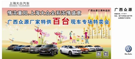 情濃重陽,喜迎眾源三周年店慶,上海大眾全系濃情盛意。10月12日-13日,廣西眾源三周年店慶濃情綻放,為感謝三年來新老客戶對廣西眾源的關注與支持,廣西眾源周年慶活動期間全系車型均享年度最優(yōu)價格,前所未有的超低鉅惠享受,還有推杯子環(huán)節(jié)給您驚喜額外現(xiàn)金優(yōu)惠,機會不容錯過,趕緊在這個千載難逢的時刻入手您的心動愛車吧!