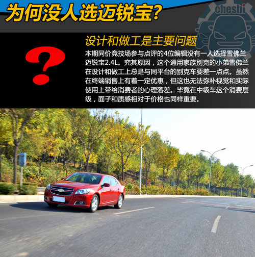 作者總結(jié):不到20萬的價格對于合資品牌的中級車來說,并不算高。但低價不等于低質(zhì)量,本期三款對比車型均有著扎實地盤,良好的行車質(zhì)感。但各自也都有一些缺憾。別克新君威1.6T作為一款中級車型,方向盤上沒有一個多功能按鍵確實有些說不過去。雪佛蘭邁銳寶內(nèi)飾的拼接做工和奇怪的手動換擋操作讓人不忍直視。而馬自達(dá)6如果在一再優(yōu)惠的同時還能保證幾年前的做工和質(zhì)量那才是真正的好。綜合各方面來看,如果新君威1.6T在上市不久后能有一些優(yōu)惠,那可是非常好的選擇。