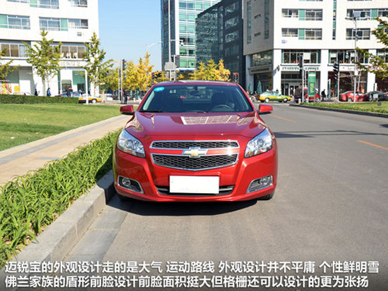 邁銳寶的外觀設(shè)計走的是大氣、運動路線,外觀設(shè)計并不平庸,個性鮮明。如今這代車型是第八代邁銳寶在細(xì)節(jié)上有著科爾維特Corvette、大黃蜂-科邁羅Camaro的元素。雪佛蘭家族的盾形前臉設(shè)計,前臉“嘴”面積挺大,但格柵其實還可以設(shè)計的更為張揚。身側(cè)面采用雪佛蘭全新家族式雙腰線設(shè)計,線條簡潔。前低后高的腰線使得邁銳寶靜止時亦呈現(xiàn)出俯沖的身姿,后部造型借鑒了“肌肉車”的元素彰顯轎跑的風(fēng)格。