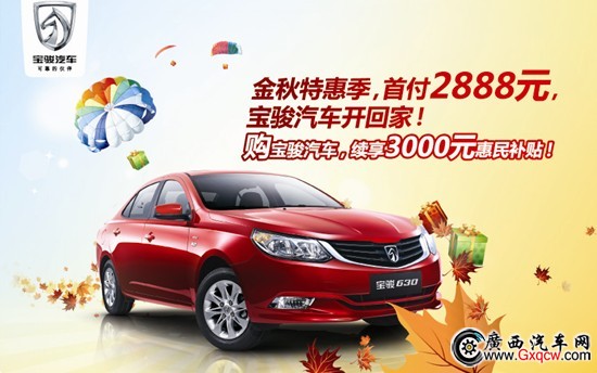 寶駿630:首付低至20% ,勁享O利率,包牌特惠低至2萬元