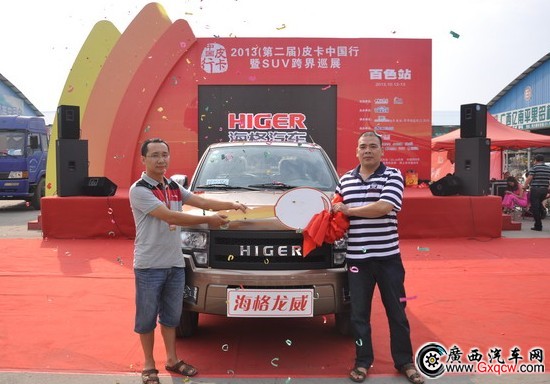 2013(第二屆)皮卡中國(guó)行暨SUV跨界巡展百色站于10月12日至13日在百色南大建材市場(chǎng)南門廣場(chǎng)隆重召開,海格皮卡在百色市場(chǎng)獲得了驕人的銷量成績(jī)。