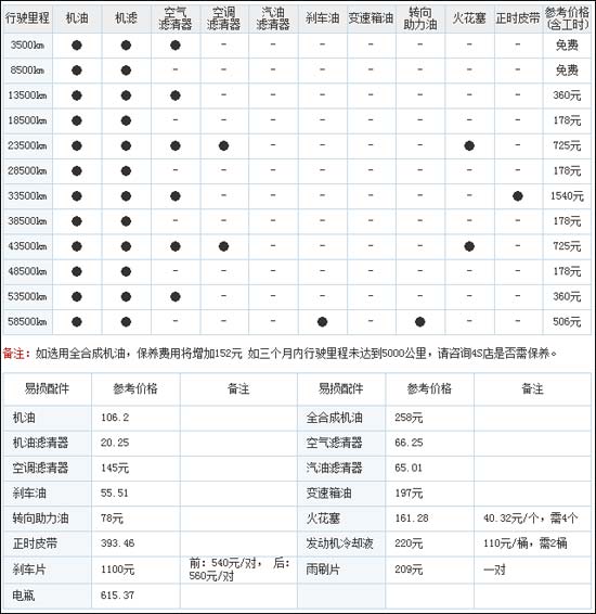 新凱越1.5L自動擋保養(yǎng)費(fèi)用參考