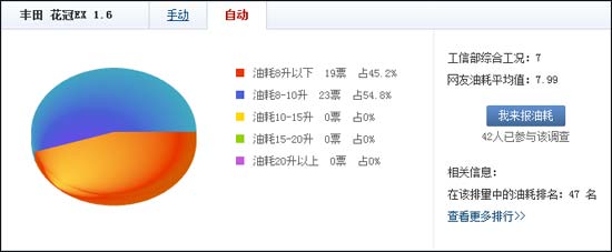 花冠EX 1.6L自動(dòng)擋網(wǎng)友平均油耗參考