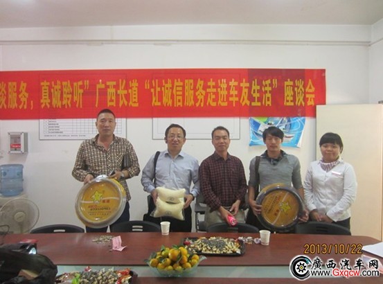 為給廣大長城車主提供一個意見反饋及分享誠信服務交流的平臺,廣西長道長城汽車安吉4S店于2013年10月22日周二下午在展廳內(nèi)舉辦“讓誠信服務走進車友生活”座談會活動,廣西長道真誠的邀請到了樂于分享愛車生活及樂于給我們提供建議的車主們齊聚一堂來共同分享!緩V西長道:安吉4S店 0771-2330301;白沙4S店 0771-5780390;安吉直營店 0771-3922501】