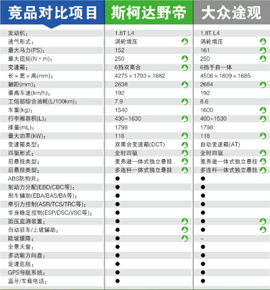 從斯柯達(dá)明銳到野帝,每每這種兄弟對(duì)決之時(shí),大眾都會(huì)看上去顯得那么蒼老。這一回野帝不僅在價(jià)格上,而且技術(shù)上也超過了途觀。 此外,大眾途觀訂車周期少則3個(gè)月,多則半年,而斯柯達(dá)野帝將在一個(gè)月內(nèi)全新上市,2013年,野帝的出現(xiàn)必將是SUV市場(chǎng)的一匹黑馬。我們不禁要為斯柯達(dá)取得的成績(jī)扶手稱贊。