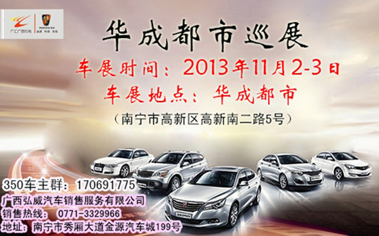 2013年11月2-3日,榮威將參與華城都市巡展,此次參展車輛有榮威350、榮威550、榮威W5,現(xiàn)場還有各種精彩活動,詳情見下圖,更多驚喜蒞臨華城都市榮威展場,詳情咨詢:0771-3329966