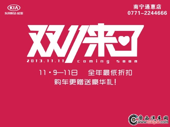 雙十一瘋搶季即將到來,您是否磨刀霍霍準備在某貓、某東上瘋狂瘋搶優(yōu)惠嗎?要買車的朋友您還在等著車展優(yōu)惠嗎?親,您out了,11月9日-11月11日,東風悅達起亞南寧通惠4S店全系車型全年最低折扣,購車更贈送豪華禮,“雙十一汽車搶購”將瘋狂上演!屆時,K5最高現(xiàn)金優(yōu)惠3. 5萬,獅跑最高現(xiàn)金優(yōu)惠2. 8萬,智跑最高現(xiàn)金優(yōu)惠2.5萬,福瑞迪最高現(xiàn)金優(yōu)惠2萬,K3最高現(xiàn)金優(yōu)惠8000元,K2最高現(xiàn)金優(yōu)惠6000元。無論您對車型有何種需求,在東風悅達起亞廣西通惠4S店都能滿足您,只要您來即可加入搶購行列。詳詢東風悅達起亞廣西通惠4S店:0771-2244 666,地址:白沙大道69號(白沙友誼立交旁)。