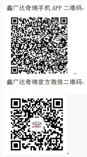 成功掃描下列二維碼并下載手機(jī)APP,即可到鑫廣達(dá)奇瑞展廳免費(fèi)領(lǐng)紀(jì)念禮品!
