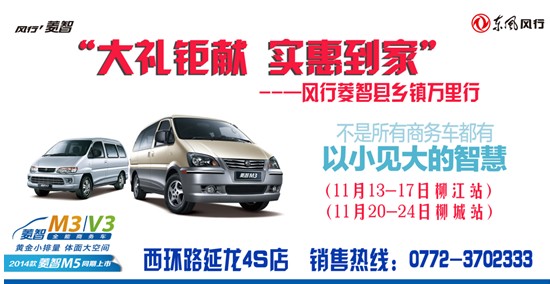 西環(huán)路延龍4S店在11月開(kāi)展風(fēng)行菱智縣鄉(xiāng)鎮(zhèn)萬(wàn)里行活動(dòng)(柳江站、柳城站),找到我們皆有免費(fèi)禮品相送。