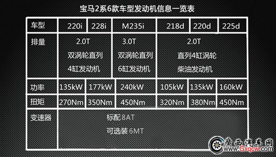 全新寶馬2系提供了三款發(fā)動(dòng)機(jī)供客戶選擇,詳細(xì)配置及參數(shù)見(jiàn)下表: