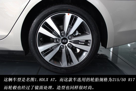 今天實拍的車型是名圖1.8DLXAT,而這款車選用的輪胎規(guī)格為215/50R17,而輪轂也經(jīng)過了鏡面處理,造型也同樣很時尚。