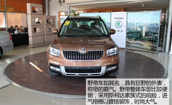 從外觀上看,野帝車如其名,具有狂野的外表,稱帝的霸氣。野帝整體車型比較硬朗,采用斯柯達(dá)家族式的前臉,進(jìn)氣格柵以鍍鉻裝飾,時尚大氣。