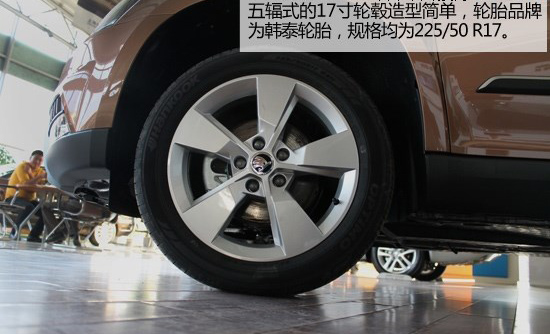 五輻式的17寸輪轂造型簡單,相比之下,高配版配備的17寸黑色精車鋁合金輪轂造型更為犀利。輪胎采用的是韓泰輪胎,規(guī)格均為225/50 R17。
