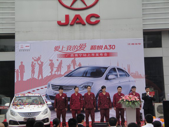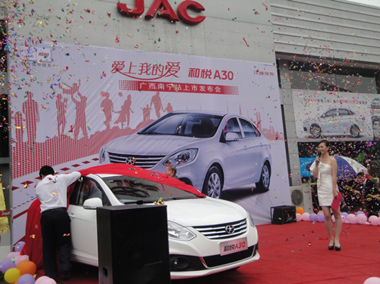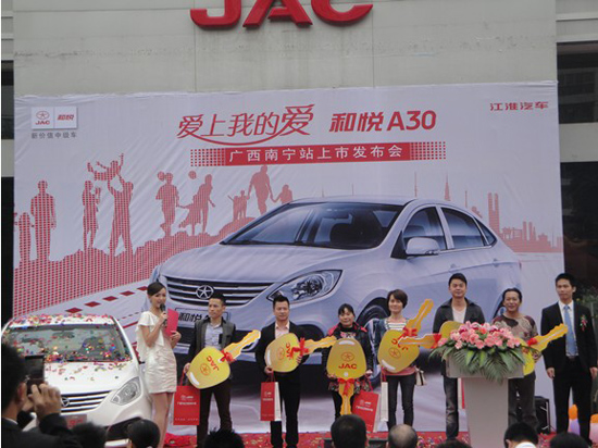 (廣西汽車網(wǎng) 訊)11月23日,江淮和悅A30南寧站上市發(fā)布會在廣西興弘江淮汽車4S店展廳舉行!眾多江淮車主與媒體朋友共同見證了江淮二代乘用車的首款家轎產(chǎn)品和悅A30亮相。