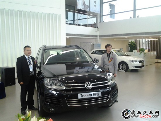 廠家領(lǐng)導(dǎo)和張勤力總經(jīng)理與進(jìn)口大眾途銳合影