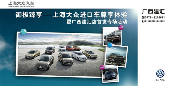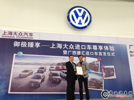 (廣西汽車網(wǎng) 訊)2013年11月24日,上海大眾廣西建匯4S店就大眾品牌進(jìn)口車業(yè)務(wù)正式啟動(dòng)授權(quán)掛牌銷售發(fā)布儀式,廣西汽車網(wǎng)及本地眾多主流媒體和嘉賓愛(ài)邀參加此次發(fā)布會(huì)。從即日起,消費(fèi)者在上海大眾廣西建匯4S點(diǎn)展廳內(nèi),不僅可以買到上海大眾的產(chǎn)品,還能買到大眾品牌進(jìn)口車產(chǎn)品。