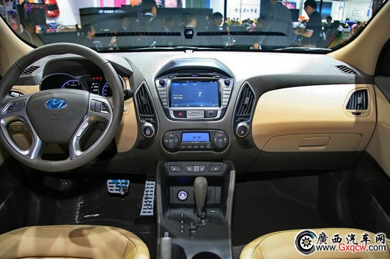 新款現(xiàn)代ix35的內(nèi)飾繼承了現(xiàn)款車型的設(shè)計(jì),造型基本未變。四輻式真皮方向盤手感很好,多功能按鍵也為行車提供了便利。雙炮筒式儀表盤造型動(dòng)感,藍(lán)底白字顯示清晰,讀取方便。配色方面,ix35提供了深淺兩種配色,淺色內(nèi)飾家居氛圍較濃。新iX35的做工延續(xù)了韓系車的講究工藝,即使材質(zhì)是硬質(zhì)塑料,經(jīng)過防滑處理后,塑造了不錯(cuò)的手感。