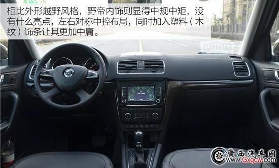 相比外形越野風(fēng)格,野帝內(nèi)飾則顯得中規(guī)中矩,沒(méi)有什么亮點(diǎn),左右對(duì)稱(chēng)中控布局,同時(shí)加入塑料(木紋)飾條讓其更加中庸。中控面板采用的是搪塑材料,手感還不錯(cuò),整體做工達(dá)到家族較高的水準(zhǔn)。