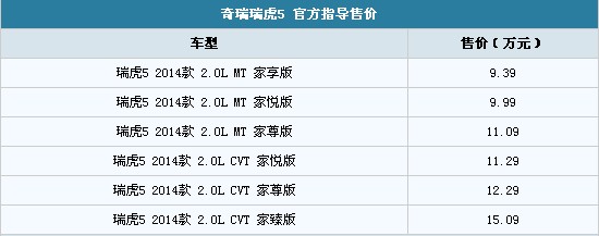 瑞虎5全系車(chē)型均搭載同一款2.0L DVVT發(fā)動(dòng)機(jī),共分為6個(gè)車(chē)型,其中CVT車(chē)型三款,售價(jià)區(qū)間為9.39-15.09萬(wàn)元。它的外形采用了奇瑞全新的家族設(shè)計(jì),與前期推出的艾瑞爾7設(shè)計(jì)風(fēng)格一致,層次分明,飽滿大氣。這樣的風(fēng)格遵從了目前的主流設(shè)計(jì)樣式,更加的新潮和時(shí)尚。