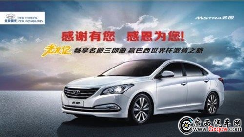 11月19日北京現(xiàn)代傾力打造的一款中高級(jí)家轎耀世登場(chǎng),為感恩500萬(wàn)北京現(xiàn)代新老客戶,北京現(xiàn)代特別推出“老友記 暢享名圖三部曲”——千元購(gòu)車禮、千元保養(yǎng)基金、ipadmini、iphone5S等等豪禮火熱派送!更有機(jī)會(huì)贏得巴西世界杯入場(chǎng)門票,激情之旅為你開啟!