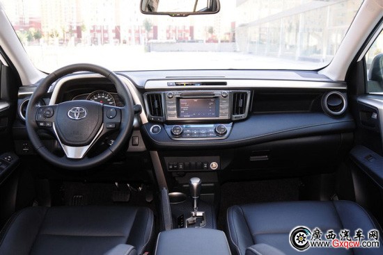 RAV4中控的配色和布局基本沿用了老款的設(shè)計,上深下淺的內(nèi)飾顏色搭配使得整個內(nèi)飾感覺更加具有溫馨感。做工依舊嚴(yán)謹(jǐn),用料倒是一般。方向盤造型改變是新款車型最顯著的變化,比較運動化,上圓下平的設(shè)計是很多跑車的設(shè)計風(fēng)格。同時采用了真皮打孔的設(shè)計,粗細(xì)適中,手感也非常不錯。中控臺采用雙層復(fù)合式結(jié)構(gòu)設(shè)計,相比于傳統(tǒng)的垂直式設(shè)計,這樣的結(jié)構(gòu)操作更為直觀簡便。上半部突出部分為音響系統(tǒng)、下半部凹陷部分為空調(diào)控制系統(tǒng)。