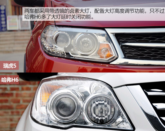 大燈造型很中規(guī)中矩,沒有很突出的亮點(diǎn),都采用帶透鏡的鹵素大燈,配備大燈高度調(diào)節(jié)功能,只不過哈弗H6多了大燈延時(shí)關(guān)閉功能。
