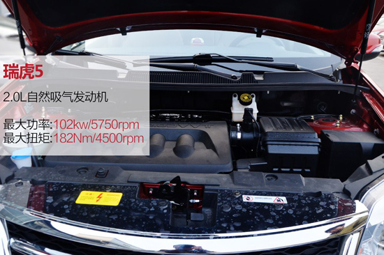 瑞虎5搭載的是一臺2.0升自然吸氣發(fā)動機,其最大功率為102kw/5750rpm,最大扭矩182Nm/4500rpm。另外,后期還將推出1.6升渦輪增壓發(fā)動機,與哈弗H6的1.5T車型較量。目前這款2.0L發(fā)動機和H6的1.5T動力參數(shù)相比有所不及,不過車身要比H6輕,不用擔(dān)心動力不夠用。