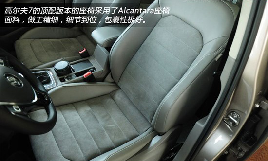 高爾夫7的頂配版本的座椅采用了ALCantara座椅面料,做工精細(xì),細(xì)節(jié)到位,包裹性極好。