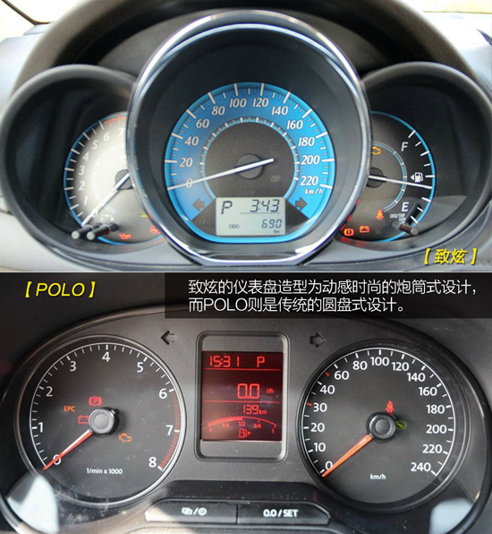致炫的儀表盤造型為動(dòng)感時(shí)尚的炮筒式設(shè)計(jì),而POLO則是傳統(tǒng)的圓盤式設(shè)計(jì),細(xì)節(jié)處理上,POLO行車電腦的讀數(shù)偏小,信息顯示不夠簡(jiǎn)明,而致炫只有頂配才有行車電腦,不過(guò)顯示簡(jiǎn)明扼要,讀數(shù)也比較大。