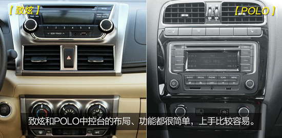 致炫的內(nèi)飾給人最大的感覺(jué)就是層次感很強(qiáng),簡(jiǎn)約飄逸的線條有著不錯(cuò)的視覺(jué)效果。而POLO內(nèi)飾的最大特點(diǎn),就是布局合理,中控部分偏向主駕駛一側(cè),方便駕駛者操作使用。